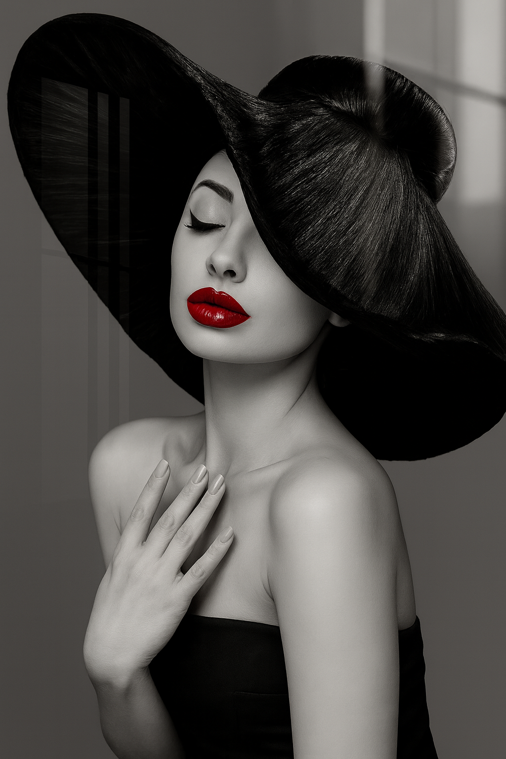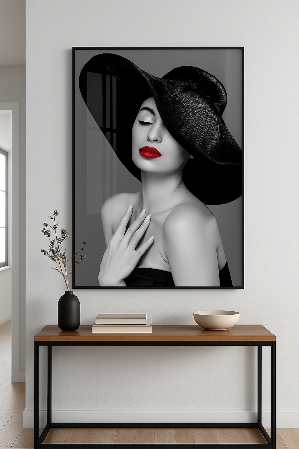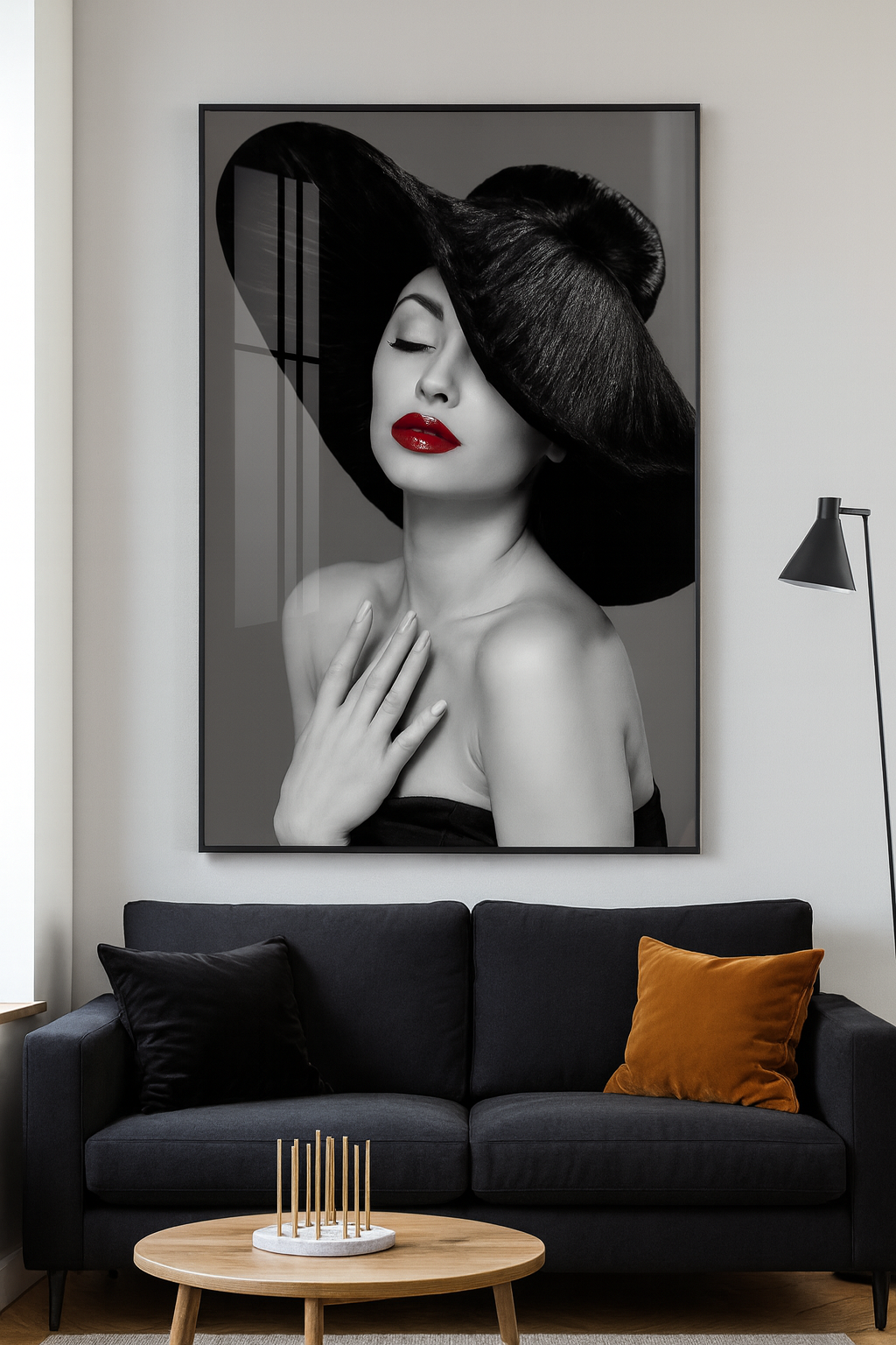 Unveil timeless elegance with Crimson Mystique, a glass wall art masterpiece where monochrome sophistication meets the bold allure of vivid crimson lips. Perfect for luxury interiors, this statement piece radiates confidence, glamour, and modern artistry.