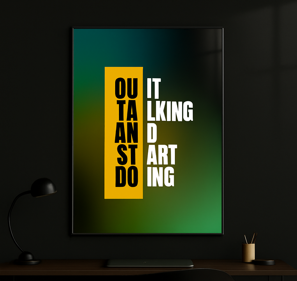 Boldly commanding, Execute Mode cuts through hesitation with its striking typography and vibrant contrast. This glass wall art inspires action over words—an unapologetic call to stop talking and start doing. Finished with a glossy, gallery-style sheen, it’s made for leaders who mean business.