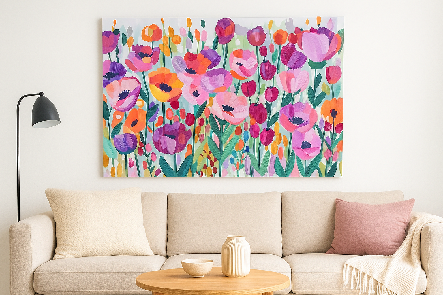 Edge-to-Edge Print: Full-bleed artwork stretched over sturdy wooden frames for a clean, modern aesthetic