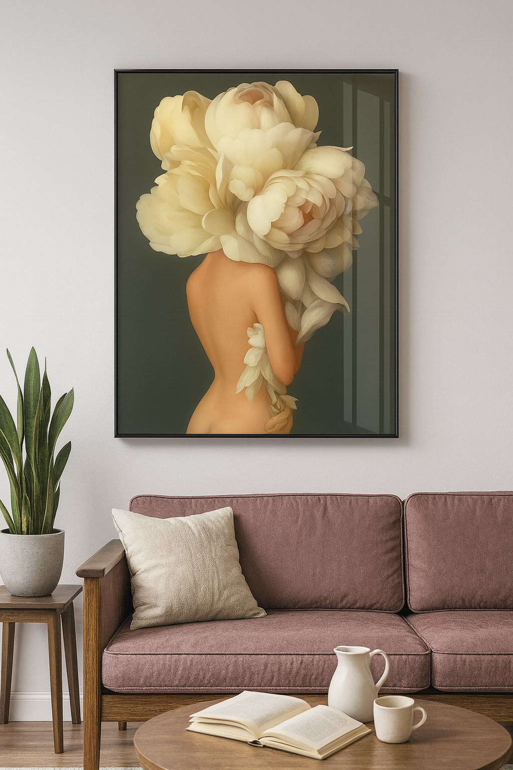 Immerse your space in timeless elegance with Floral Reverie. This exquisite glass wall art captures the delicate harmony of the human form and blooming petals, creating a luxurious statement piece. Perfect for adding a touch of romance, sophistication, and modern artistry to any interior.