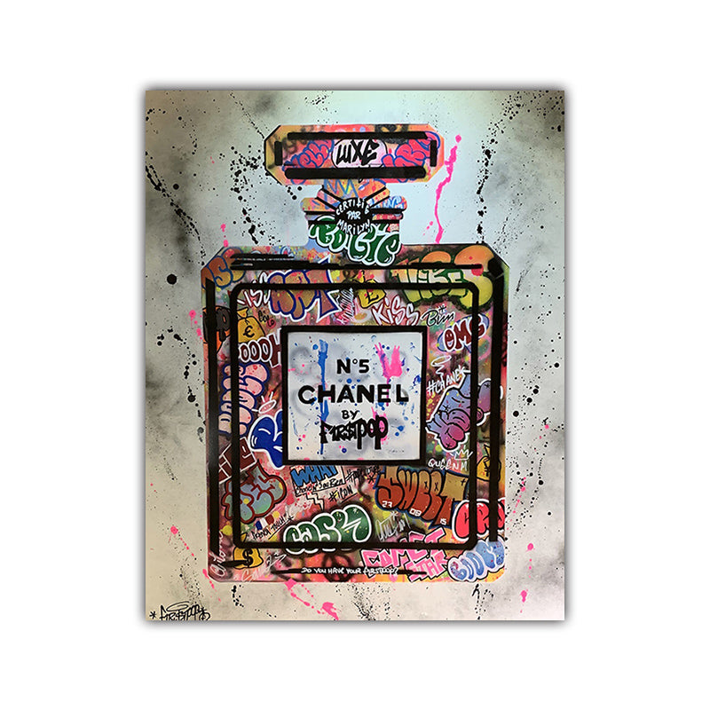 Where Parisian elegance collides with urban grit. Luxe on the Streets transforms the iconic Chanel No. 5 into a graffiti-drenched symbol of rebellion and style. A statement piece for those who live luxury loud.
