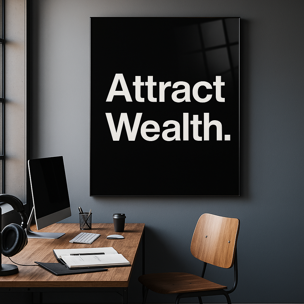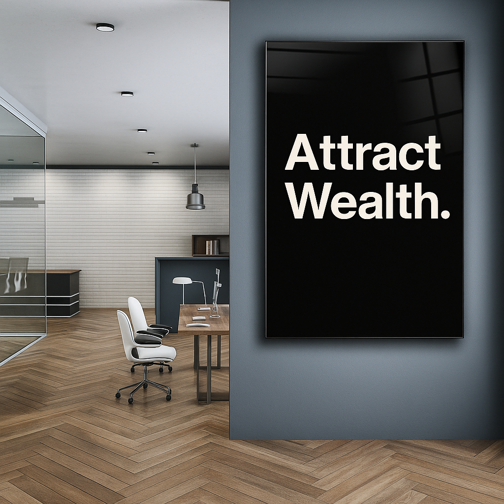Command your space with conviction. ‘Magnet for Wealth’ is a premium glass art piece crafted to elevate your mindset and magnetize abundance. With bold contrast and a minimalist finish, this artwork empowers high achievers to stay aligned with success, clarity, and intentional growth.