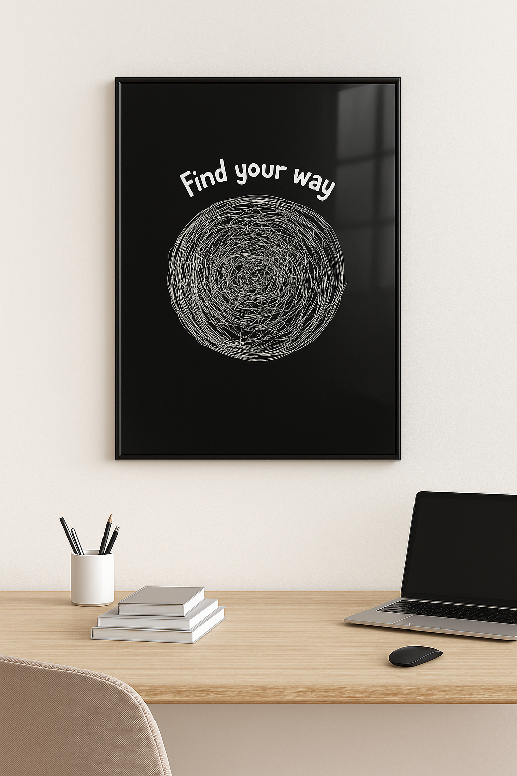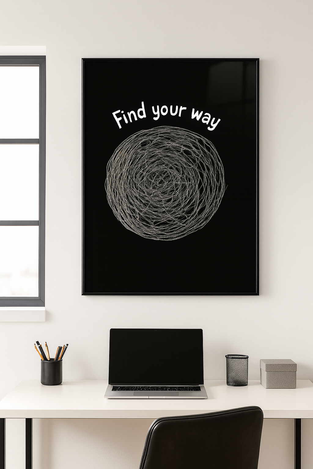 Let clarity rise from chaos. OrbitMind captures the journey of self-discovery in a swirl of luminous lines, anchored by the cosmic mantra “Find your way.” Printed on premium glass with a glossy, gallery-reflective finish, it’s more than décor—it’s direction.