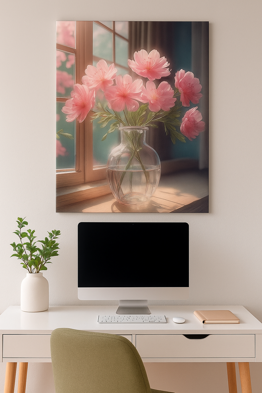 A radiant ode to refinement, Sunlit Grace transforms simple florals into pure elegance. The interplay of glass, light, and soft petals exudes quiet sophistication — perfect for elevating modern, high-end spaces.