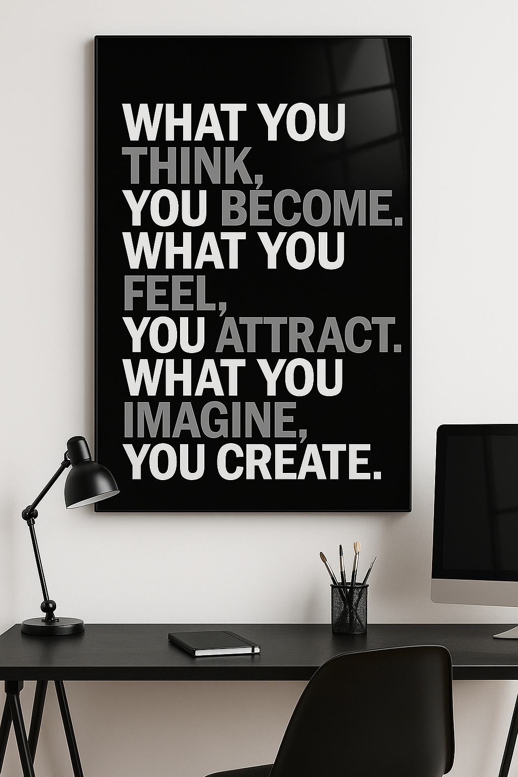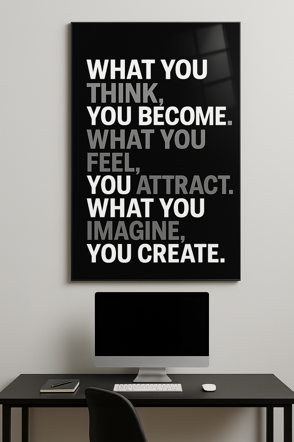 Fuel your space with unstoppable momentum. The Power Equation is a bold glass art statement designed for high achievers—where thoughts spark action, emotions shape destiny, and imagination builds reality. A must-have mindset anchor for studios, workspaces, and visionaries.