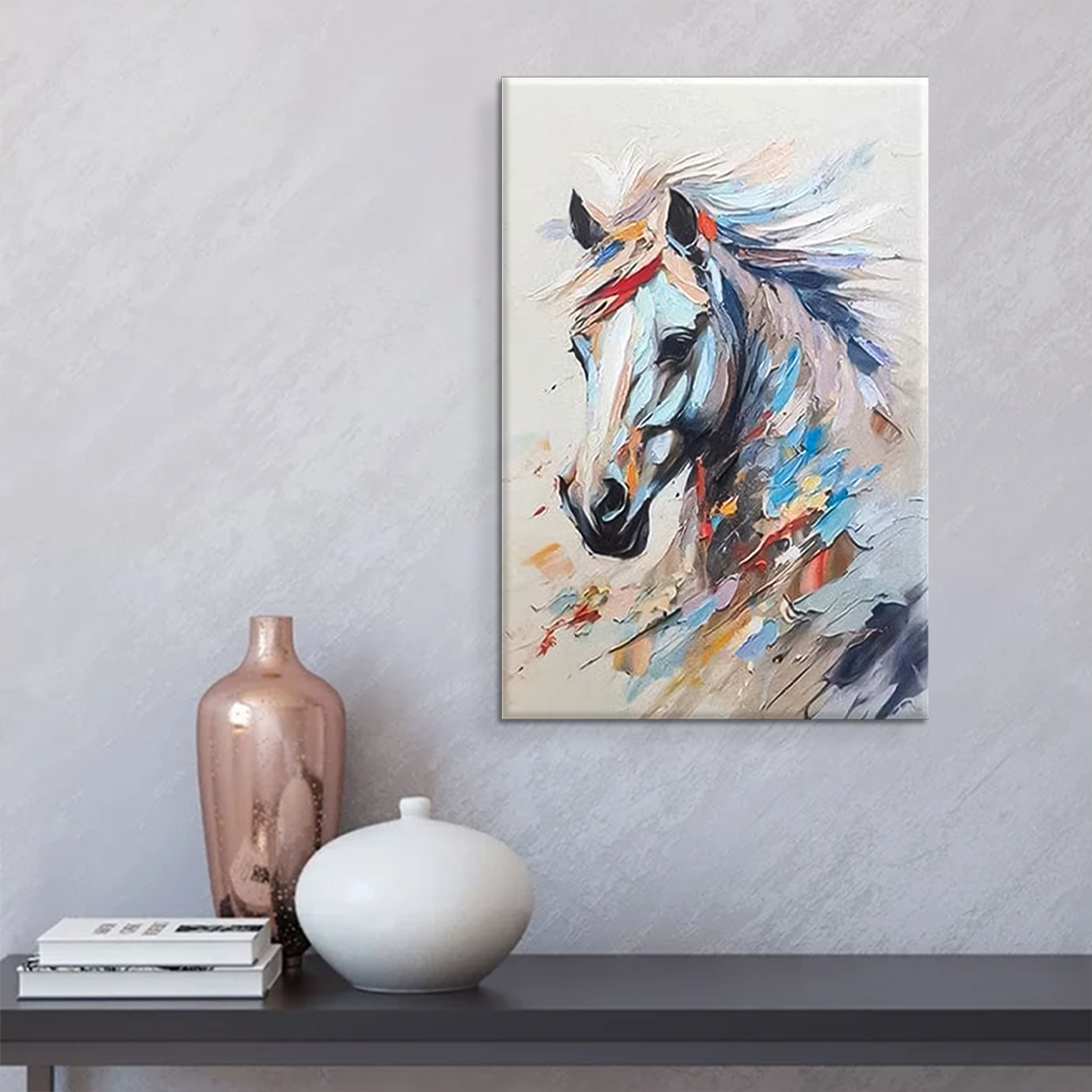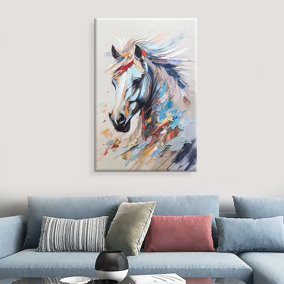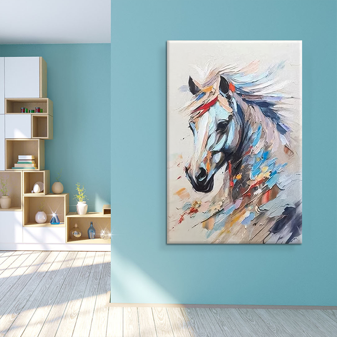 Wild Spirit captures the untamed grace of a galloping soul in motion. With sweeping brushstrokes and a burst of vibrant hues, this striking stallion embodies power, freedom, and artistic energy. A captivating piece that brings raw movement and strength to any modern or rustic space.